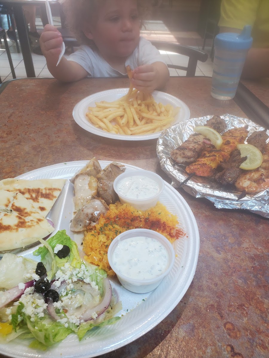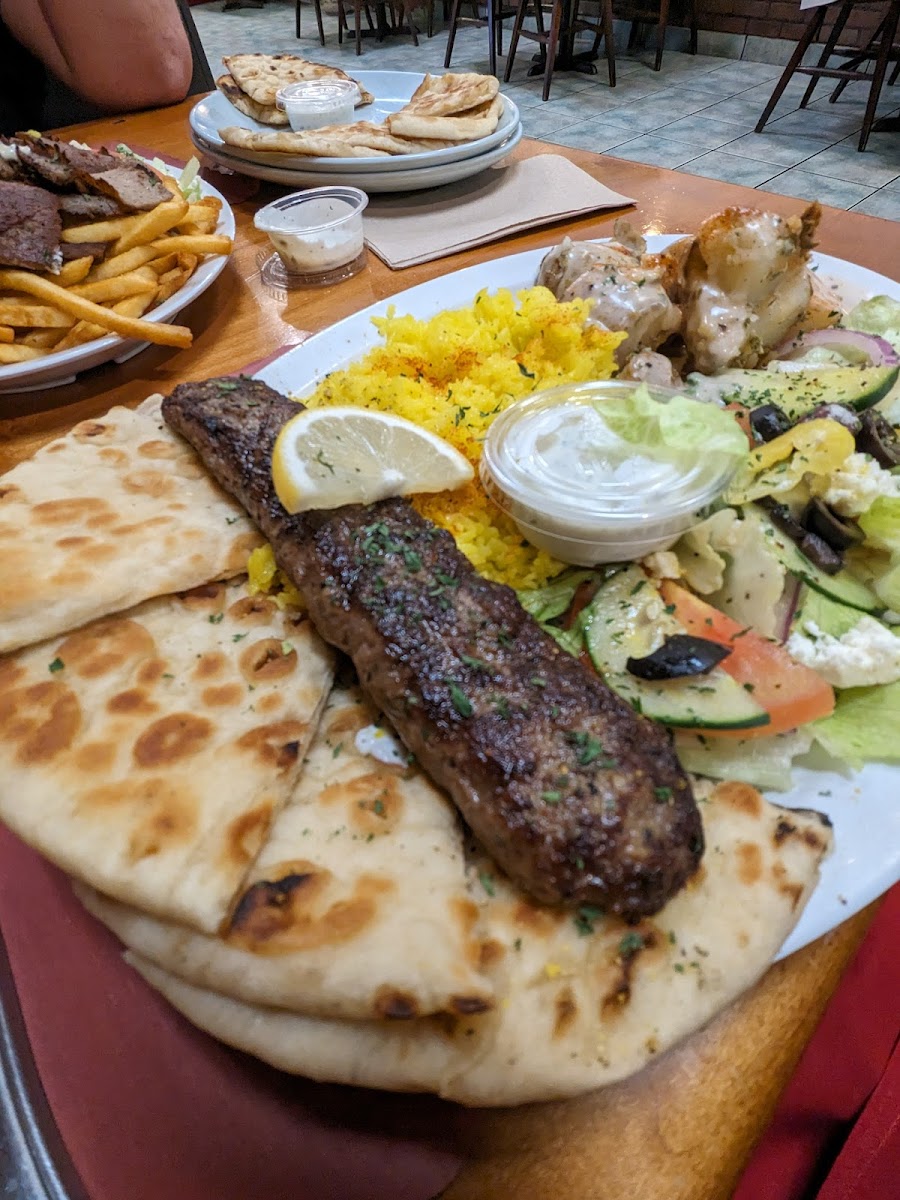 One of the standout dishes on the menu is the Chicken Kabob with Gyro Plate. This flavorful dish combines perfectly marinated, grilled chicken with a side of tender gyro, all served with traditional Mediterranean accompaniments. For those looking to dive deeper into the rich flavors of Greek cuisine, the Lamb Kebab is a must-try. Tender, seasoned lamb grilled to perfection, it’s a crowd favorite that highlights the authenticity of Greek cooking.